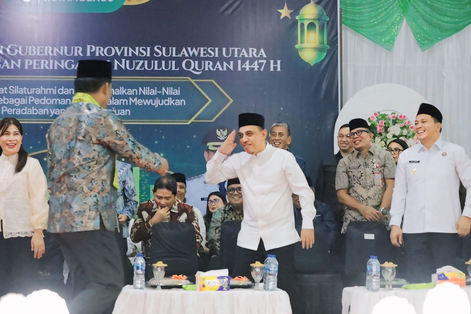 JUARAnews.co KOTAMOBAGU — Bupati Bolaang Mongondow (Bolmong) Yusra Alhabsyi, S.E., M.Si. bersama Wakil Bupati Dony Lumenta menghadiri kegiatan Safari Ramadan Pemerintah Provinsi Sulawesi Utara yang dirangkaikan dengan peringatan Nuzulul Quran 1447 Hijriah di Masjid Agung Baitul Makmur, Kota Kotamobagu, Selasa (10/3/2026).
