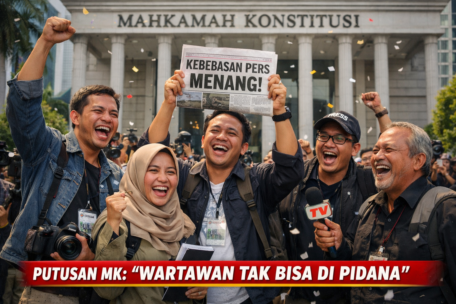 JUARAnews.co JAKARTA — Mahkamah Konstitusi (MK) mengabulkan sebagian permohonan uji materiil yang diajukan Ikatan Wartawan Hukum (Iwakum) terhadap Pasal 8 Undang-Undang Nomor 40 Tahun 1999 tentang Pers (UU Pers). Putusan tersebut menegaskan bahwa wartawan tidak dapat serta-merta dijerat sanksi pidana maupun perdata atas karya jurnalistik yang dijalankan secara sah, profesional, dan sesuai dengan kode etik jurnalistik.