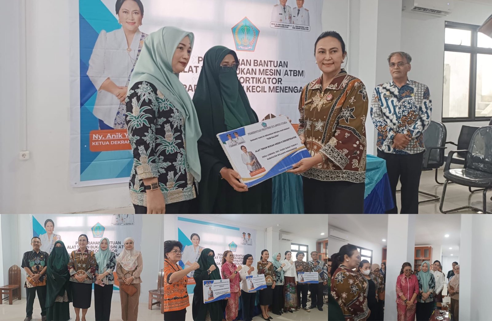 Bantuan diserahkan oleh Ketua Dekranasda Provinsi Sulawesi Utara, Ny. Anik Wandriani Yulius Selvanus, di Kantor Dinas Perindustrian dan Perdagangan Provinsi Sulawesi Utara. Kehadiran Ny. Kalsum menjadi bukti dukungan nyata terhadap kelompok perajin binaan di daerahnya.