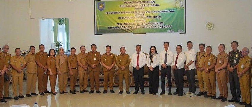 JuaraNews.co, Bolmong – Pemerintah Kabupaten Bolaang Mongondow (Bolmong) terus menunjukkan keseriusannya membangun pemerintahan yang bersih dan transparan. Senin (29/9/2025), Pemkab resmi menjalin kerja sama dengan Kejaksaan Negeri (Kejari) Kotamobagu melalui penandatanganan nota kesepahaman (MoU) di bidang Perdata dan Tata Usaha Negara (TUN).