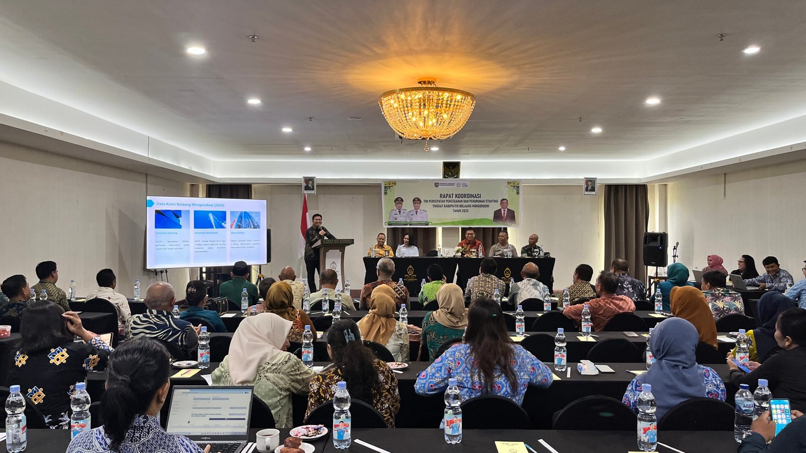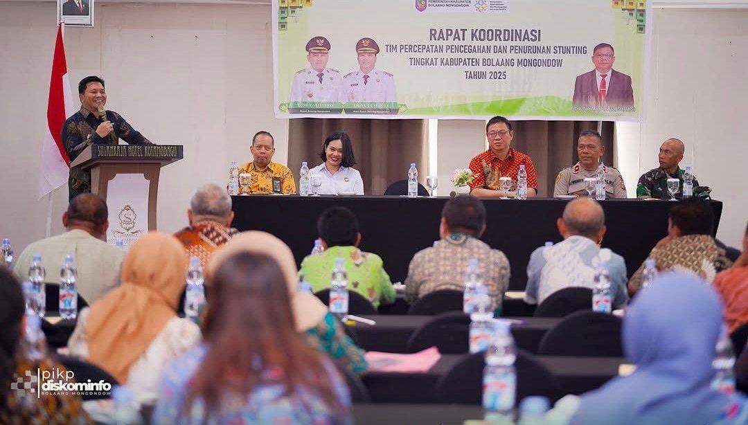 JUARAnews.co KOTAMOBAGU — Upaya Pemerintah Kabupaten Bolaang Mongondow (Bolmong) dalam menurunkan angka stunting kembali dikuatkan melalui rapat koordinasi Tim Percepatan Pencegahan dan Penurunan Stunting Tahun 2025 yang berlangsung di Hotel Sutan Raja Kotamobagu, Kamis (11/12). Pertemuan tersebut mempertemukan Ketua DPRD Tony Tumbelaka, Asisten Pemerintahan dan kesra, para pimpinan OPD, Staf Khusus Bupati, Camat se-Bolmong, Tenaga Ahli PMD, tenaga kesehatan, Penyulu KB serta sejumlah pemangku kepentingan lainnya.