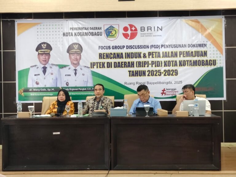 Penetapan ini disampaikan dalam Focus Group Discussion (FGD) penyusunan Rencana Induk Penelitian dan Pengembangan – Penguatan Inovasi Daerah (RIPJ-PID) yang digelar di ruang rapat Bappelitbangda, Kelurahan Mogolaing, Jumat (7/11/2025).