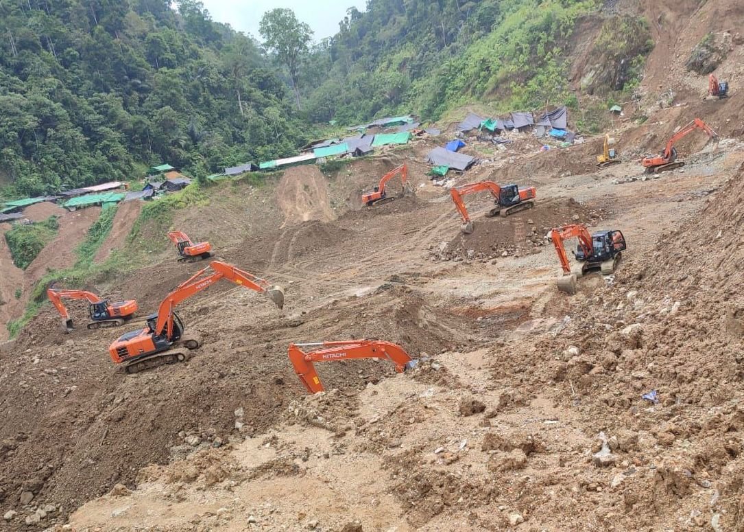 Lebih dari 10 unit alat berat hilir-mudik di kawasan tambang. Dari udara, Potolo tampak seperti lokasi pertambangan resmi padahal semua kegiatan itu tanpa izin, melanggar hukum, dan merusak lingkungan.
