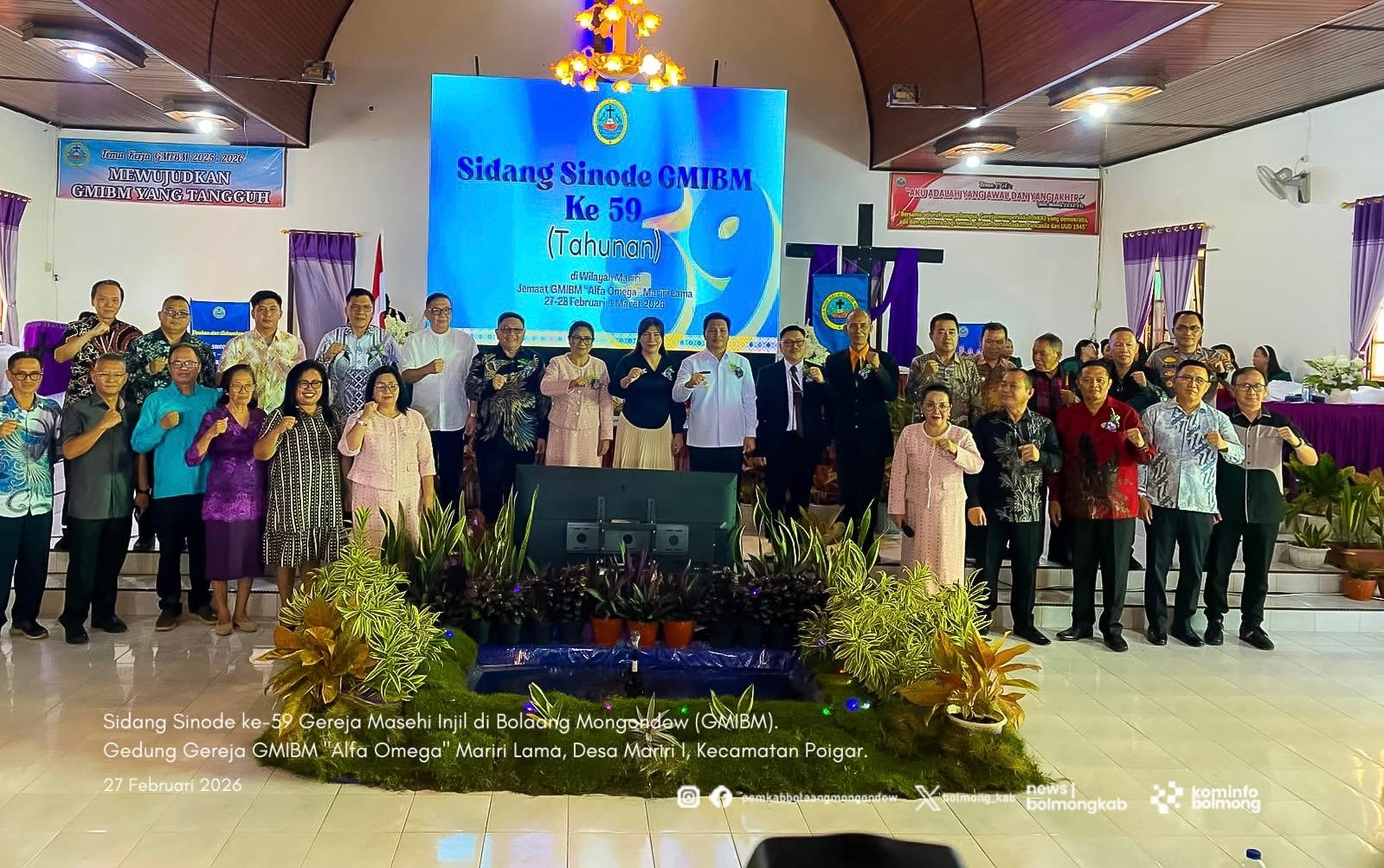 JUARAnews.co BOLMONG — Suasana penuh kebersamaan mewarnai pembukaan Sidang Sinode ke-59 Gereja Masehi Injil di Bolaang Mongondow (GMIBM) yang dilaksanakan Jumat (27/2/2026) di Gedung Gereja “Alfa Omega” Mariri Lama, Desa Mariri I, Kecamatan Poigar. Kegiatan tahunan gereja tersebut secara resmi dibuka oleh Wakil Bupati Bolaang Mongondow, Dony Lumenta.