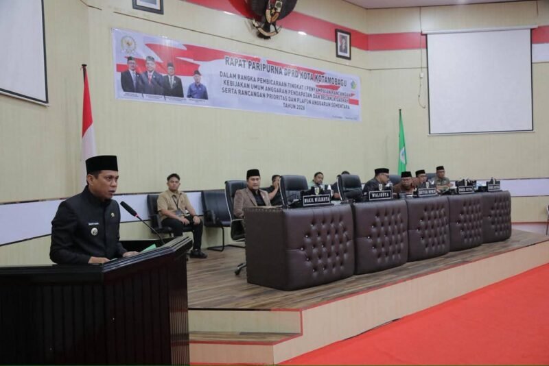 Paripurna yang digelar di Gedung DPRD Kota Kotamobagu, Jalan Paloko Kinalang, tersebut merupakan pembicaraan tingkat I terkait penyampaian Rancangan Kebijakan Umum Anggaran serta Prioritas dan Plafon Anggaran Sementara (KUA-PPAS) Tahun Anggaran 2026. Rapat dipimpin langsung oleh Ketua DPRD, Adrianus Mokoginta, dan turut dihadiri anggota DPRD, jajaran Forkopimda, Sekretaris Daerah, para asisten, pimpinan OPD, camat, lurah, sangadi, serta ASN di lingkungan Pemerintah Kota Kotamobagu.
